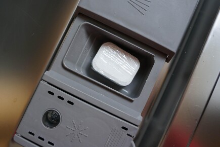 Nutzen Sie in Ihrem Geschirrspüler Öko-Tabs oder Öko-Pulver? Daran kann es liegen, wenn auf dem Geschirr ein weißer Kalkschleier zurückbleibt. Umweltfreundliche Tabs und Pulver sind nämlich frei von synthetischen Enthärtern. Stellen Sie in diesem Fall den Ionenaustauscher in Ihrer Maschine höher ein als vorgegeben und füllen das Regeneriersalz regelmäßig auf. Sind es nur einzelne, abgegrenzte Kalkflecken, braucht es mehr Klarspüler. Zeigt sich ein blaugrauer, schlieriger Belag, ist der Klarspüler zu hoch dosiert.